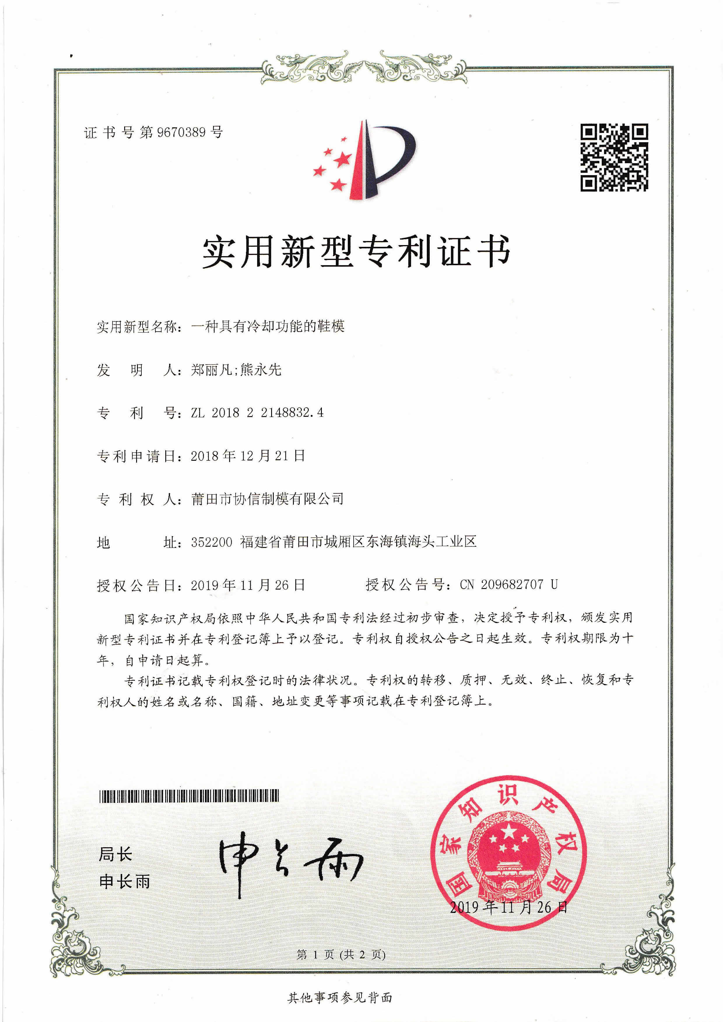 2個發明專利證書...